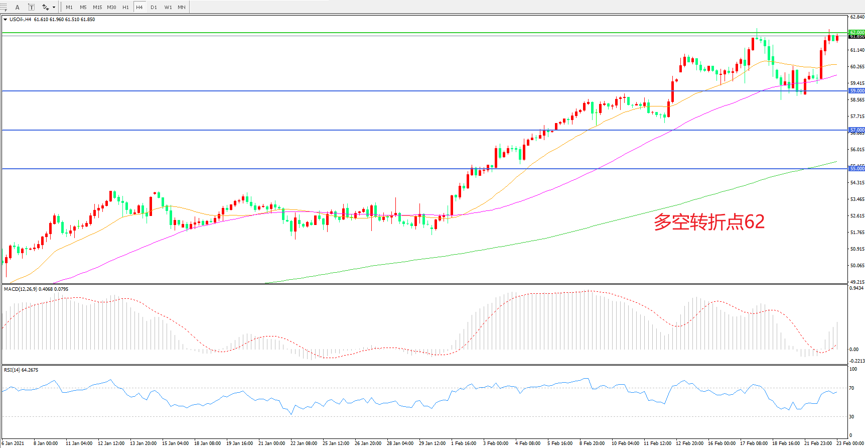 交易策略:在62.00之上看涨,目标65.00 68.00