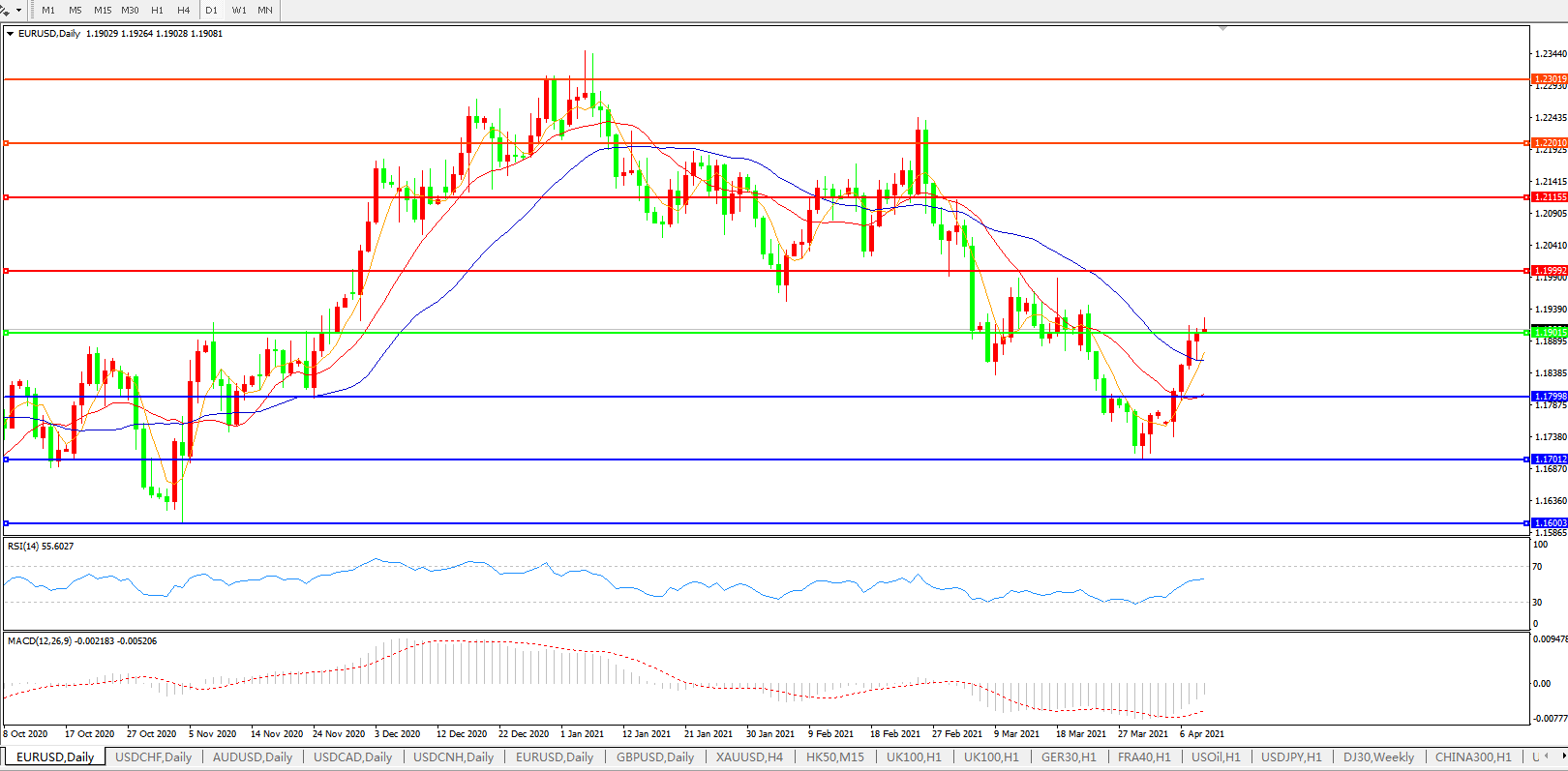 交易策略:1.1900下方看跌,目标1.1800、1.1700