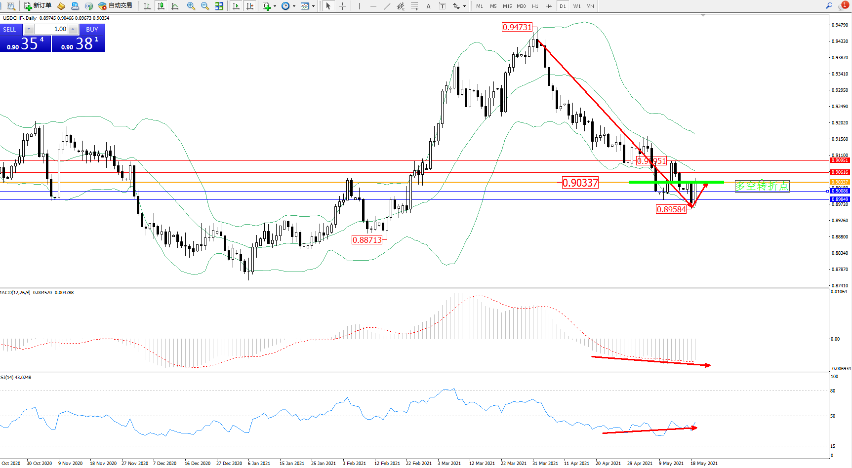 备选策略:0.90337上方看涨,目标0.90616、0.90951