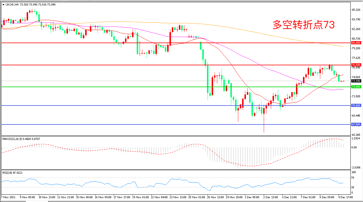 周四(12月9日),虽然目前数据显示奥密克戎病毒致死率较低,但市场兴奋情绪逐步消退,风险资产整体回落,布伦特原油承压回落,收报73.90美元/桶。油价没能再进一步表明多头对当前的市场信心不足,疫情的干扰以及美联储加息的预期下,油价想要突破仍需更多助力。