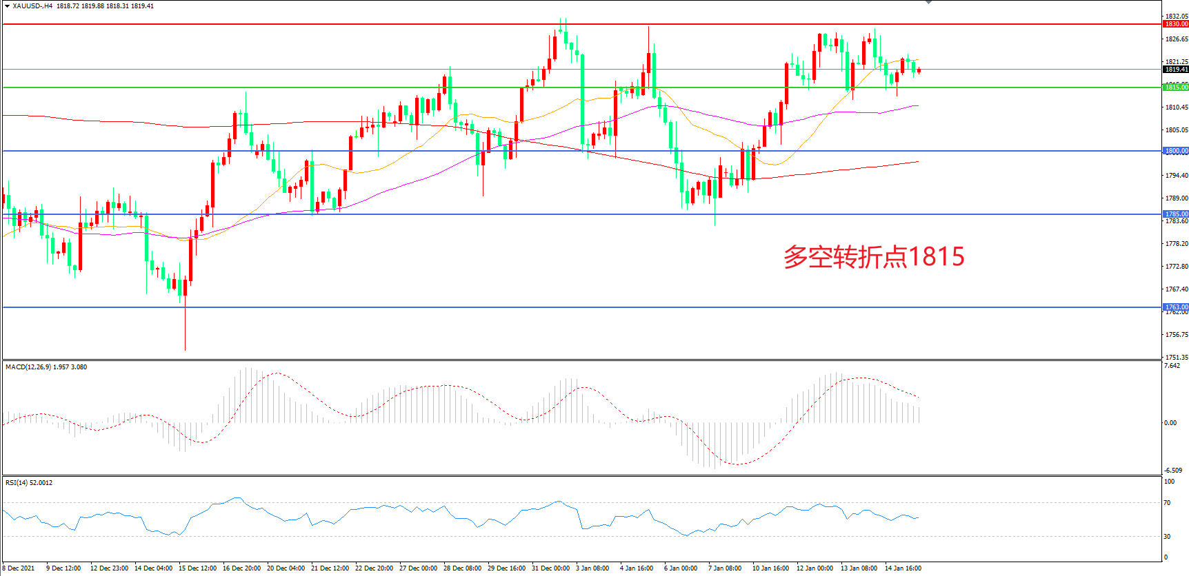 交易策略:在1815.00之上看涨,目标1830.00 1845.00