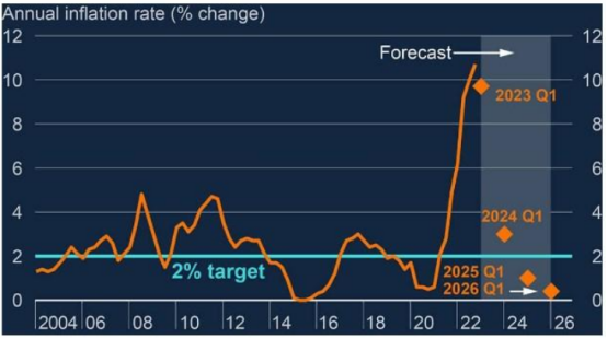 英国央行在2月02日发布了新的预测,显示通胀将在2023年大幅下降,并在2024年回到2.0%的目标。该行通过其指引表示,它正在接近加息周期的结束。