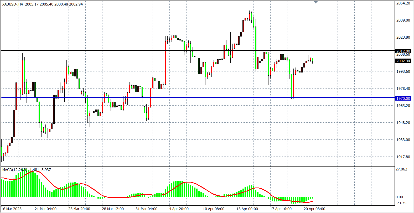 周四(4月20日)在美国公布初请失业金人数和成屋销售等宏观经济数据逊于市场预期后,经济衰退担忧加剧,市场押注美联储将在5月进行最后一次加息,美元和美债收益率回落,现货黄金震荡走高,最终收涨0.58%。展望后市,经济衰退的可能性增加,往往会带来通货紧缩,迫使美联储尽早结束紧缩行动,有利于金价上涨。