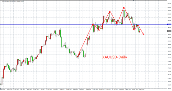 周四(5月25日)由于围绕美国债务上限谈判出现重大进展,降低了对黄金的避险需求,同时美国初请失业金数据继续上升,推高市场了对美联储再次加息的押注,现货黄金跌至3月22日以来最低点,最终收跌0.83%。